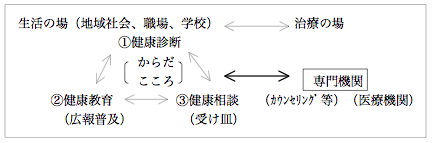 メンタルヘルスの活動とは、治療の場のみならず、「生活の場」のあらゆるスタッフ(職種)がメンタルヘルスの理解を深め、相談の力をつけ、同時にその輪を成員全体にひろげること。