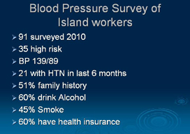 (A family Nurse Practitioner and Public health administrator at Tinian Helath Center, Tinian, Commonwealth of the Northern Mariana Islands)
