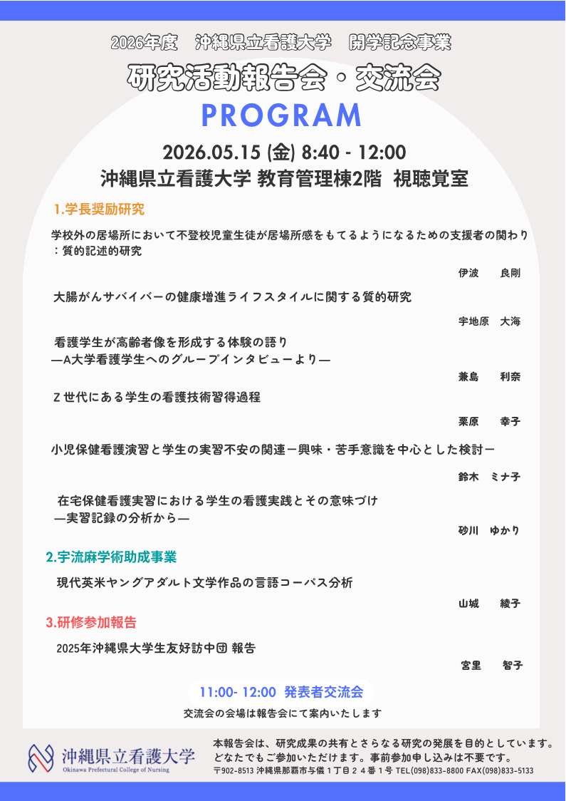 2026年度 沖縄県立看護大学 開学記念事業「研究活動報告会・交流会」のお知らせ