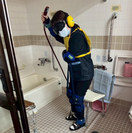 老年保健看護実習室は、和室や台所、浴室、段差など、自宅にあるような空間が再現された学習環境です。この実習室では、白内障の視界を再現したゴーグルや、関節が動きにくくなるサポーター、重りのついたベストを装着し、高齢者の身体的・感覚的な変化を疑似体験することができます。こうした体験を通して、日常の不便さや危険を実感するとともに、困難な状況でも工夫しながら生活する高齢者のたくましさに目を向け、その力をどう支えるかを考えていきます。